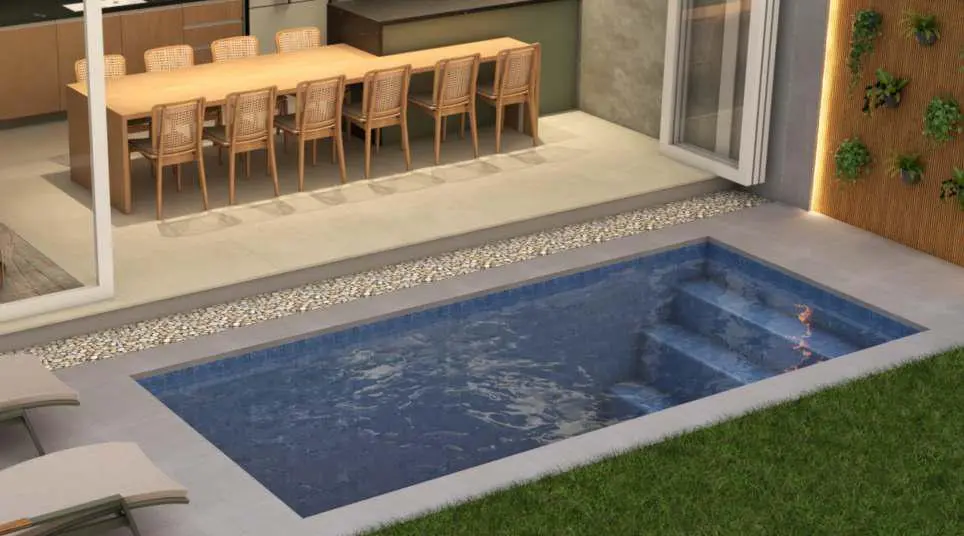 A Piscina Garden combina design moderno e funcionalidade em medidas compactas, ideais para áreas menores. Seu formato elegante e revestimento pastilhado valorizam o ambiente, proporcionando um toque de sofisticação e conforto. Perfeita para quem deseja unir estética, praticidade e bem-estar em um só projeto.